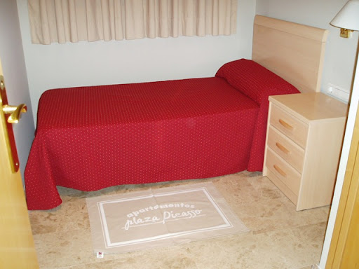 Efter en kvart parkerade han utanför vårt lägenhetshotell, Apartamentos Plaza Picasso. Lägenheten var en glad överraskning och de hade gett oss en tvårumslägenhet till priset av en enrumslägenhet. Så nu på semestern har vi ett rum mer än vad vi är vana att ha hemma. Ett extra rum till en son eller mamma/svärmor.
