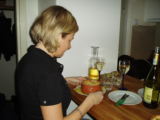 Till förrätt fick vi avokado med laxröra och huvudrätten hade hon komponerat själv, kock som hon är. Det var en torsk-spenat-lax-lasagne to die for. Den serverades i ett varsitt krus som hon köpt på vårt älskade Naxos för 11 år sen.