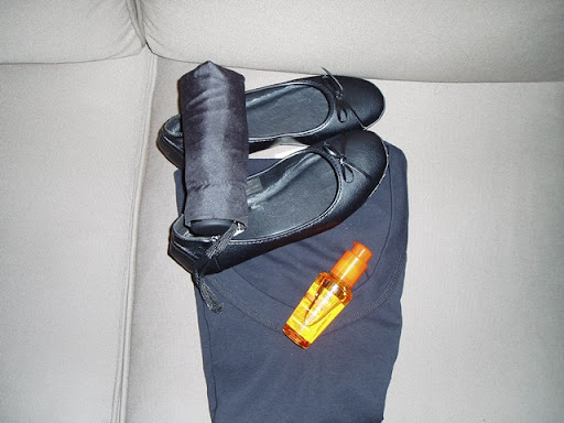 Av min fru fick jag fyra paket. Ett paraply i bra handväskestorlek, ett par ballerinaskor, en svart topp och "Ulmitate controlling elixir for very rebellious, dry hair" från Kerastase. Dyrt skit!