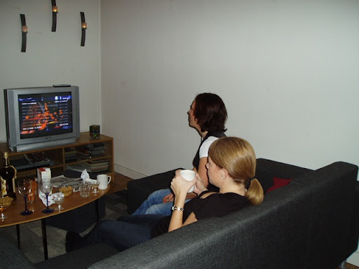 Vi hoppade sen i en taxi och åkte till Roxy på Nytorget. Bilden har vi tagit från deras hemsida så riktigt så här folktomt var det inte. Dock var vi lite förvånade över att det var så pass lite folk där helgen efter lön. Vi träffade på Mitra (jobbarkompis till Lill-Åsa) och hennes kompis Karin. En annan bekanting som vi också såg springa förbi vårt bord var psyko-Åsa. Vi fick bråttom att titta ner i glasen för att undvika ögonkontakt. Vid tolvslaget skålade vi in min födelsedag och vid 01.00-tiden åkte vi hemåt nöjda med kvällen.