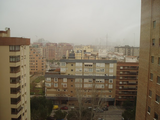 Vi vaknade upp till ett soldisigt Valencia och det här är utsikten från vår lägenhet på elfte våningen.